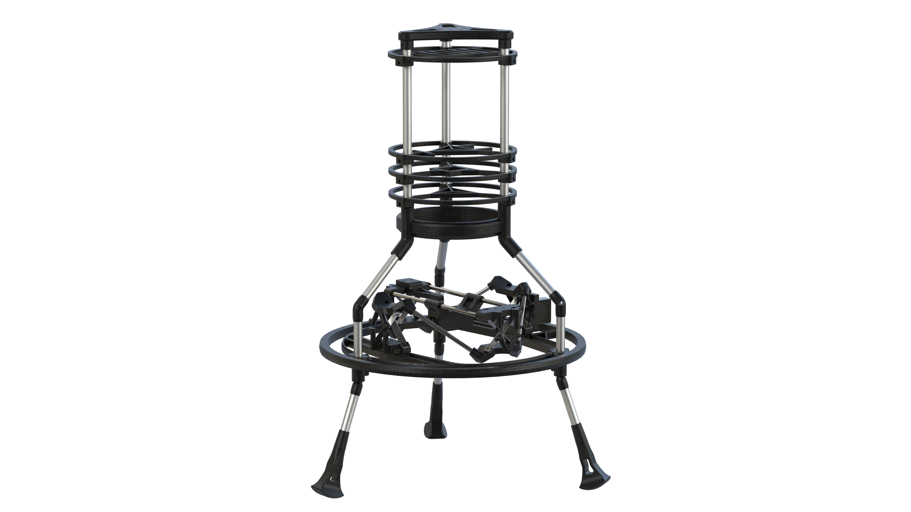 As the central part of the Hopper, the Middle Structure consists as a interface between legs and Upper structure. Mounted on it are the batteries, FTS, COPV, and propulsion interfaces.
